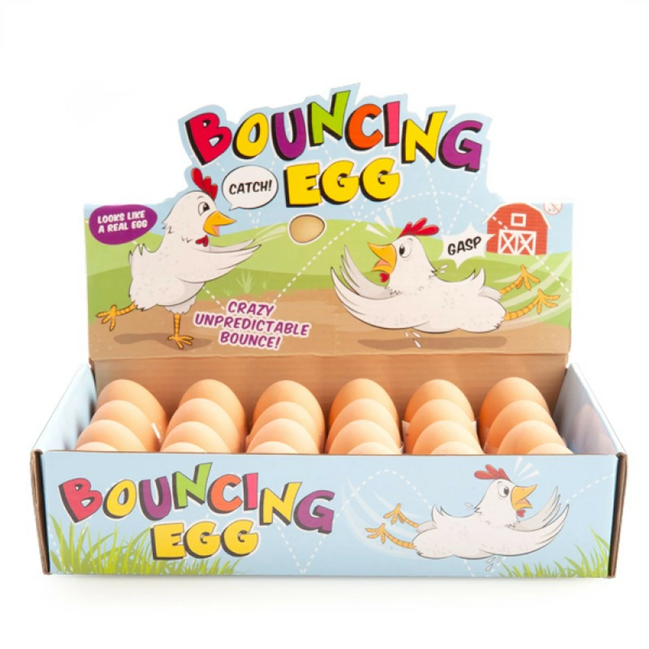 A bouncing ball that looks like an egg! The egg shape makes for a crazy and unpredictable bounce