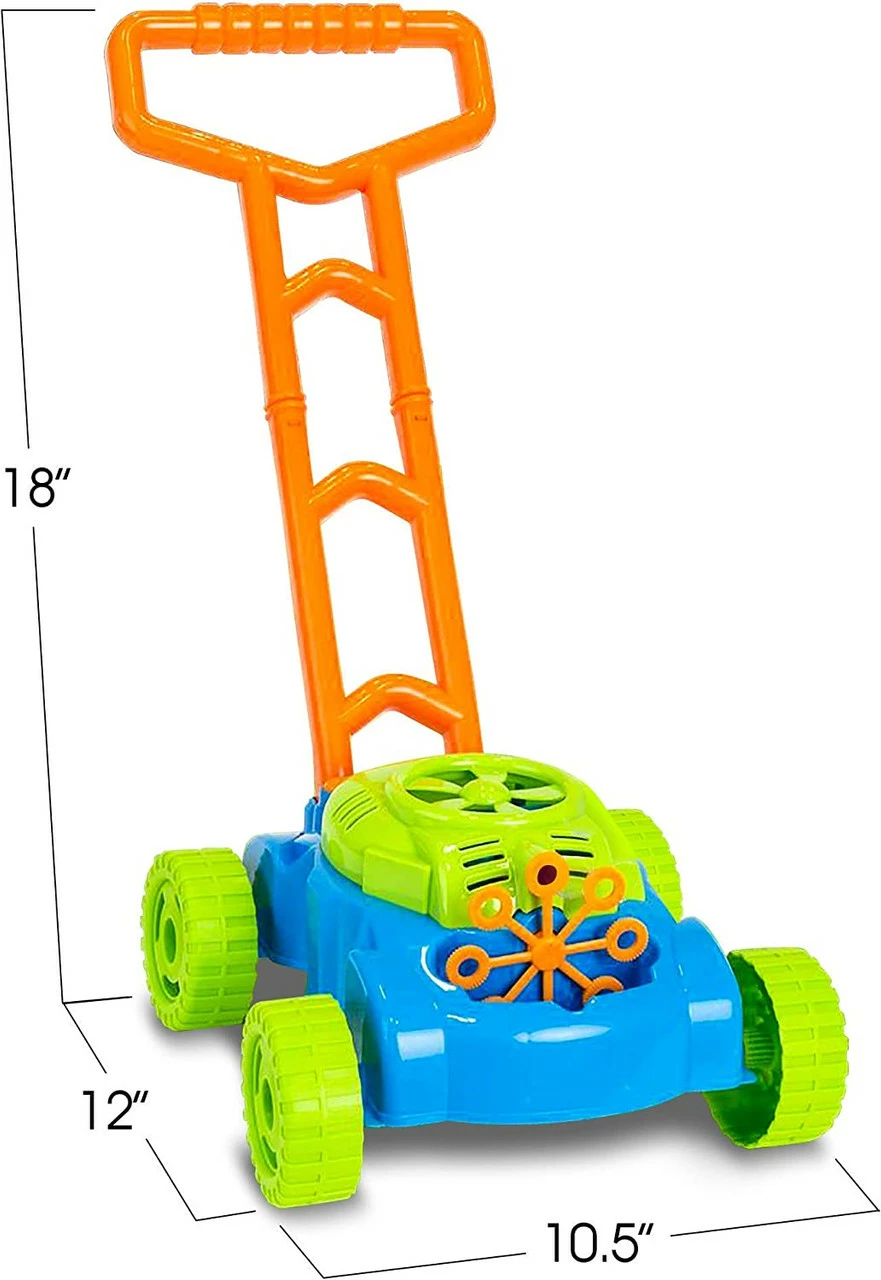 - Fuel their imagination: This 18-inch lawnmower doesn’t just blow bubbles; it also produces realistic sound effects to amplify the fun; the wheels make gear sounds when pushing. Indoors or outdoors, it will keep kids happily busy. Moving and walking about is a fun way for little ones to get in some healthy exercise. GREAT