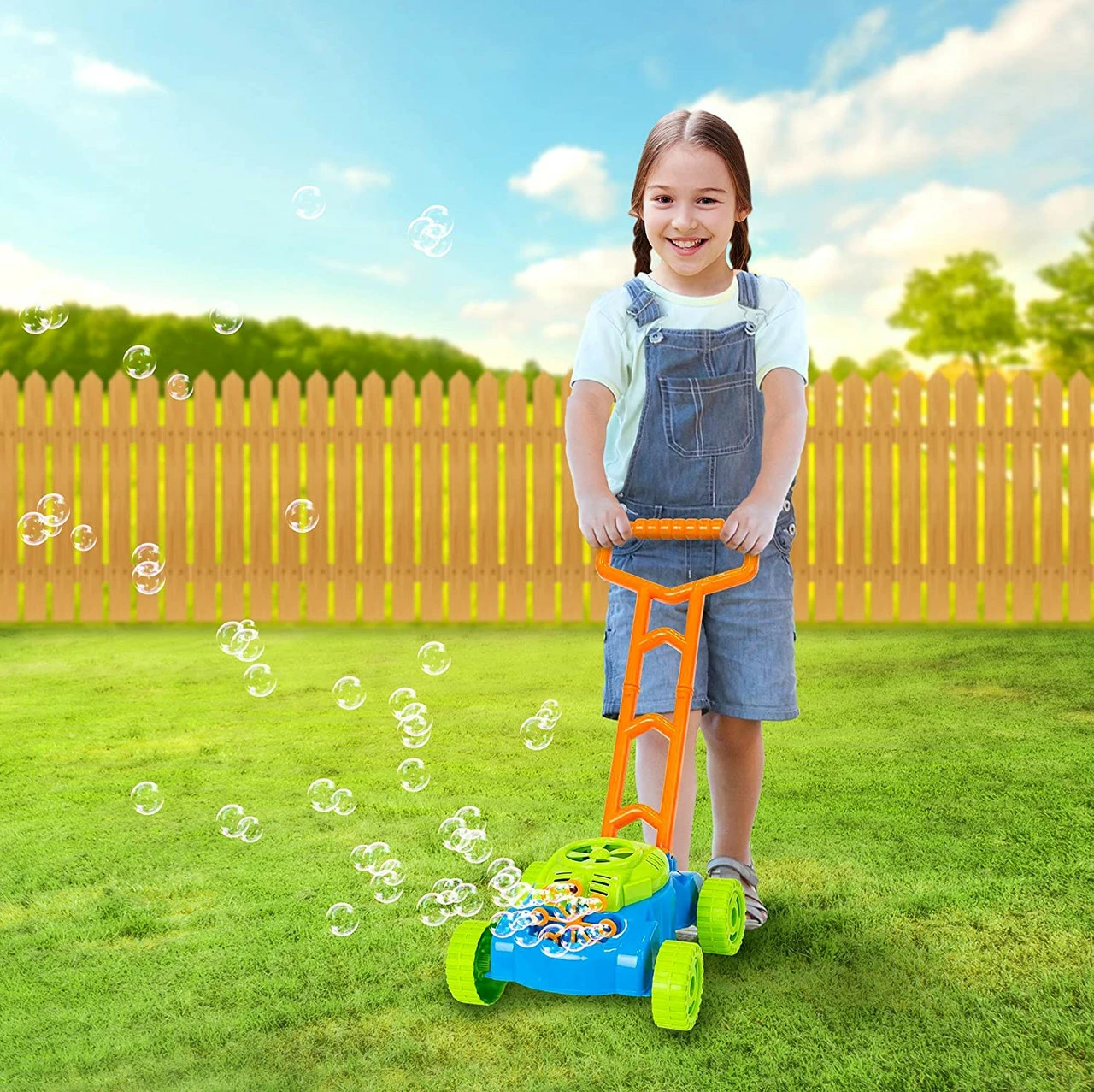- Bubble Mowing Fun: An awesome toy that will have that kid bubbly with glee! This lawn mower doubles as a bubble blower, machine kids will love.