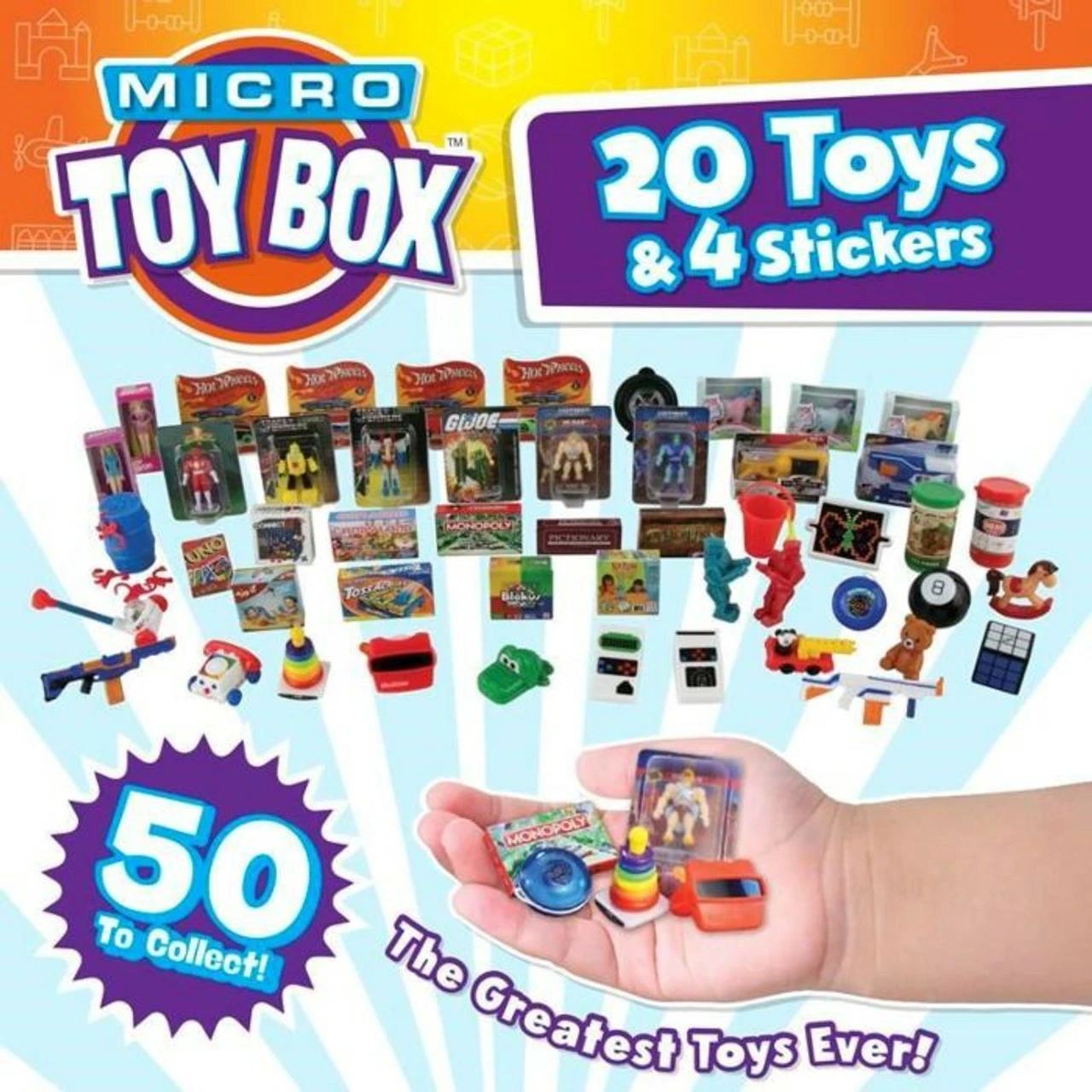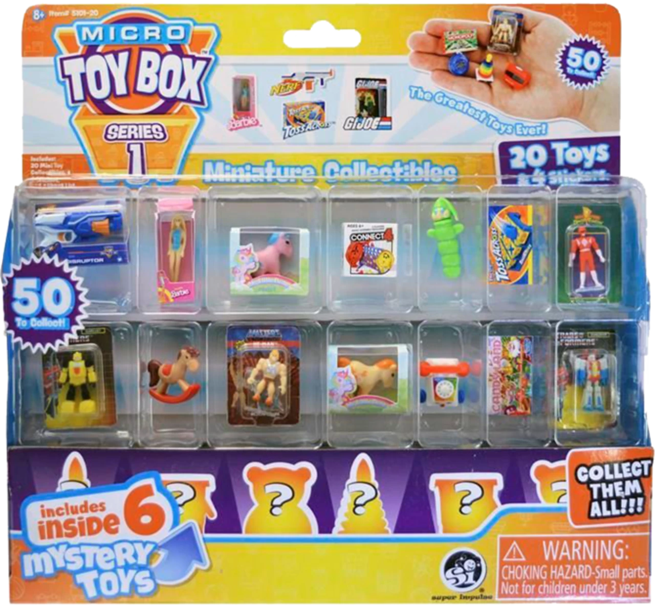 All your favourite toys and games have been made mini! Unwrap and reveal the 6 surprise mini toys in every pack. What surprises will you unbox? There are 50 miniature micros toys from: Rubiks, Barbie, Nerf, Hot Wheels, My Little Pony, Hasbro games e.g. Monopoly, and more! There’s even a handy collector’s leaflet to check off your surprise reveals. Have fun building your collection and swapping with your friends! One pack supplied. Colours and styles may vary. Includes: 20 micro toys – 14 visible and 6 surprise – and a collector’s leaflet with 4 stickers.