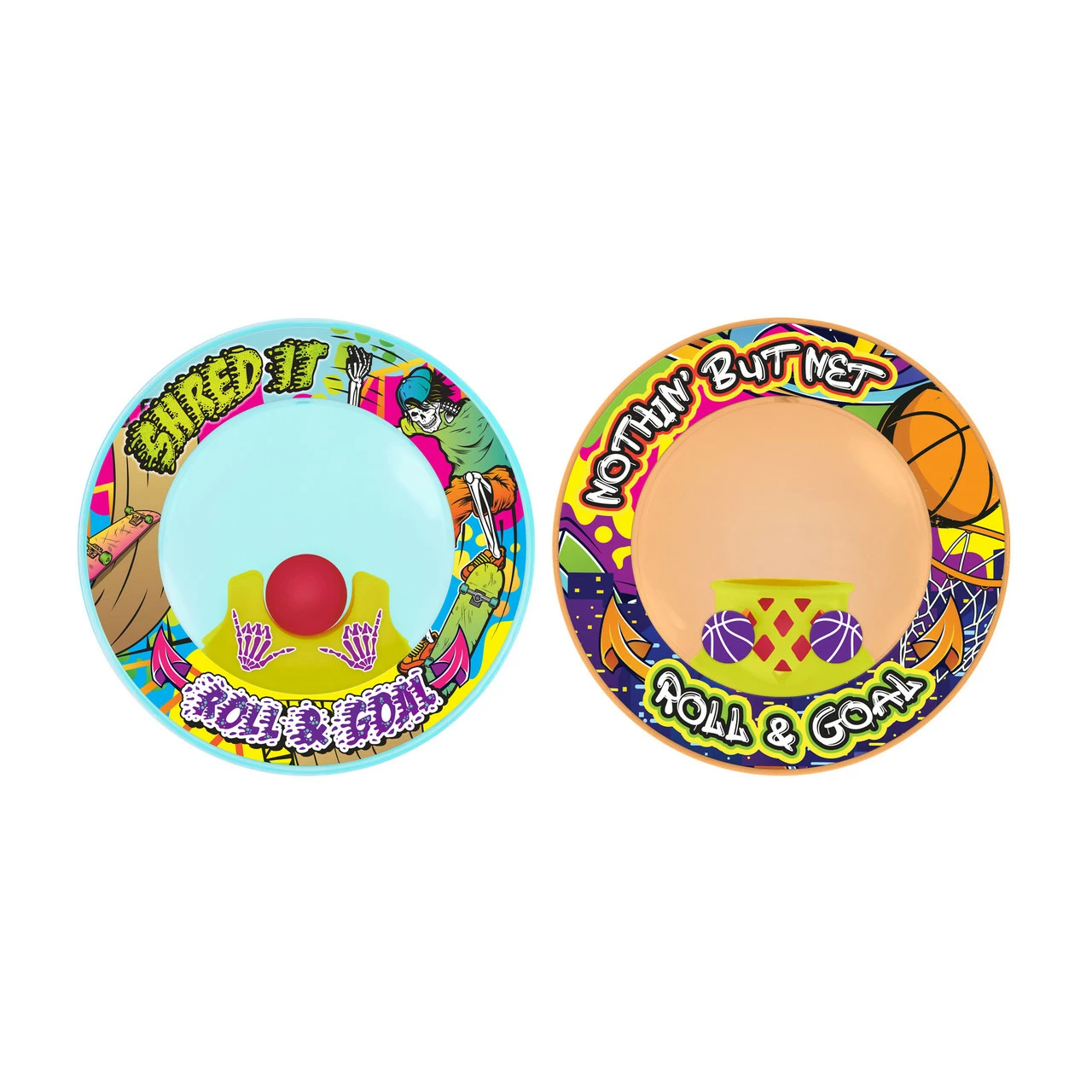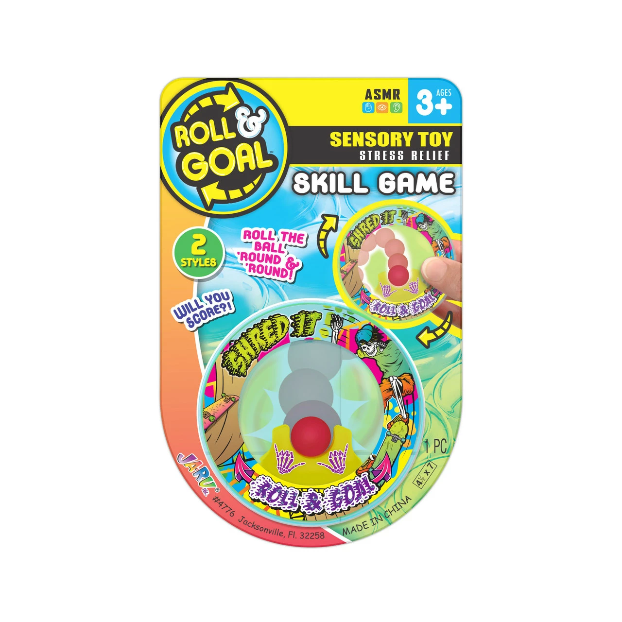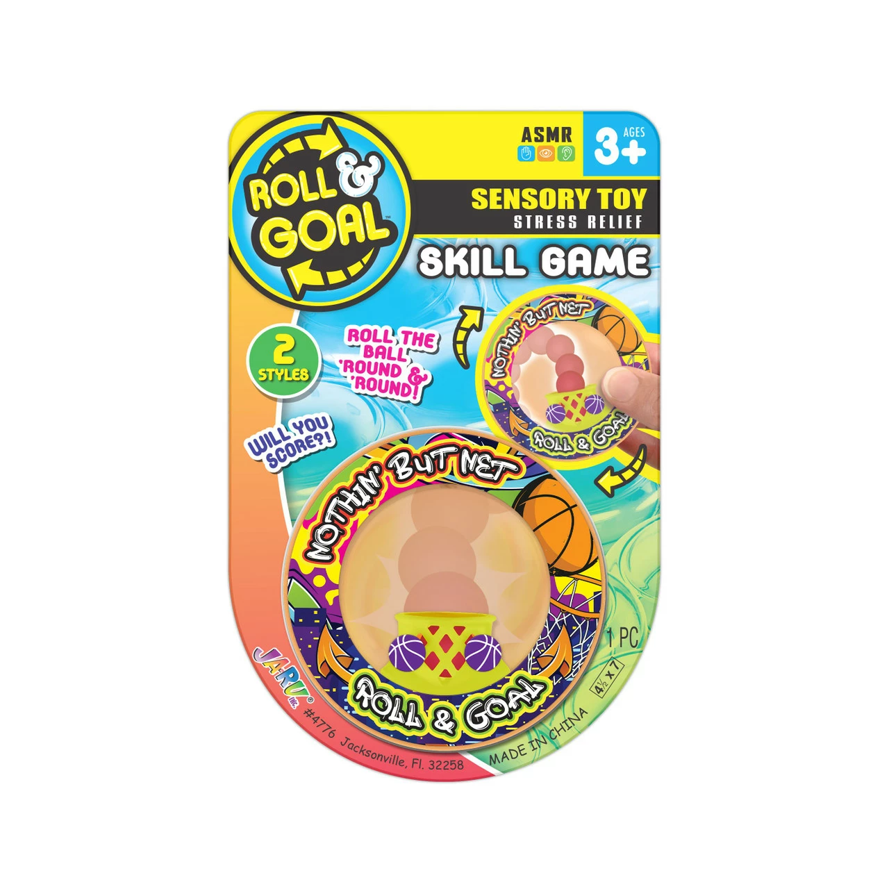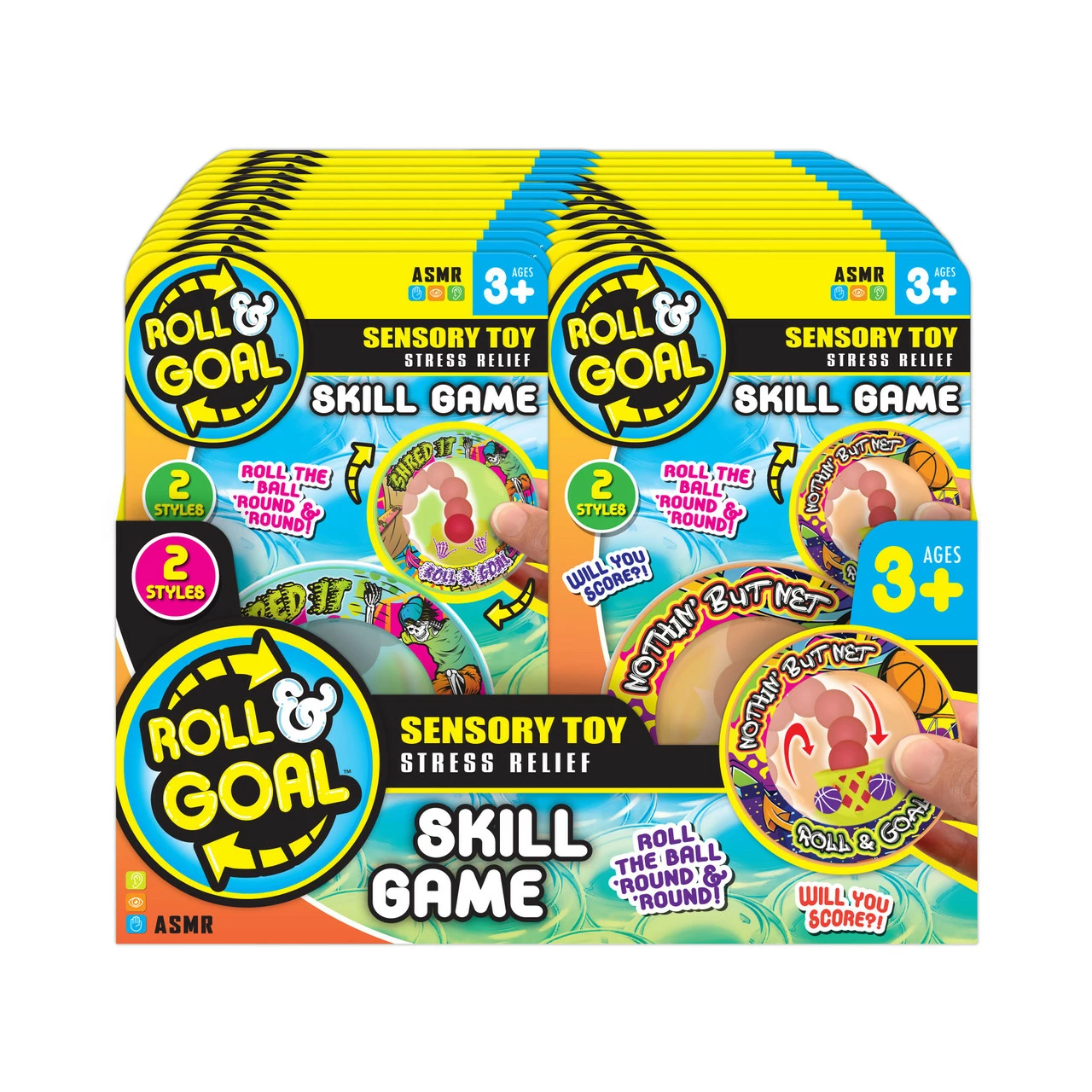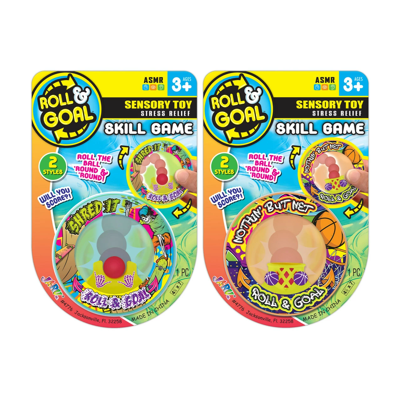 Roll & Goal Skill Game comes in two styles; Basketball & Skateboard. Roll the ball round and round, test your skills and score!