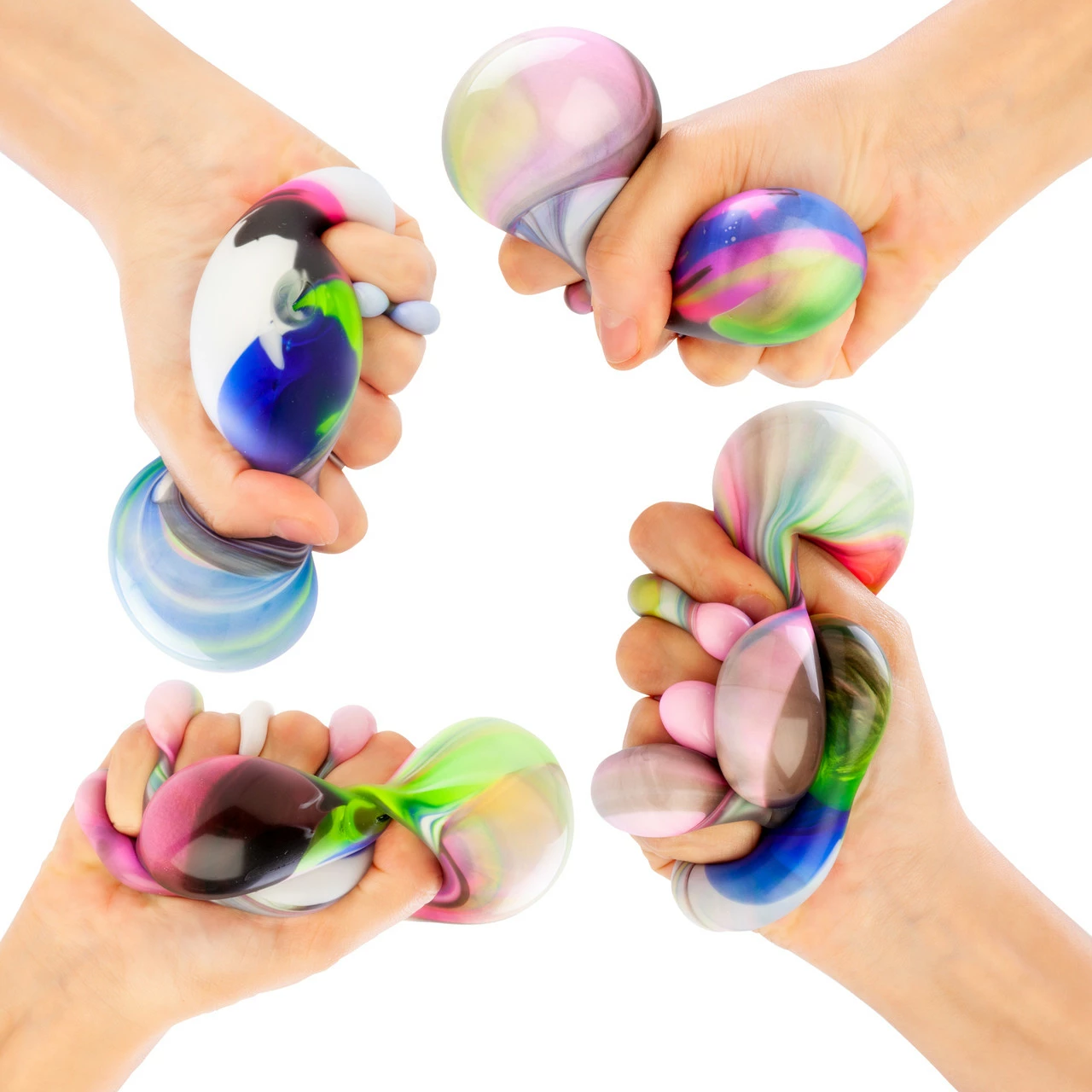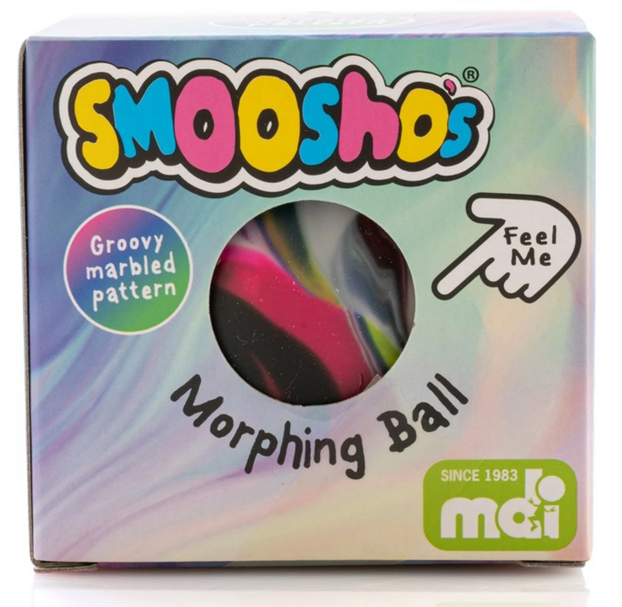 Medium-sized Smoosho ball – perfect size for everyday squishing! Features a dynamic swirly design that almost looks like it’s moving. Smoosho’s amazing squeezable texture makes your worries melt away.