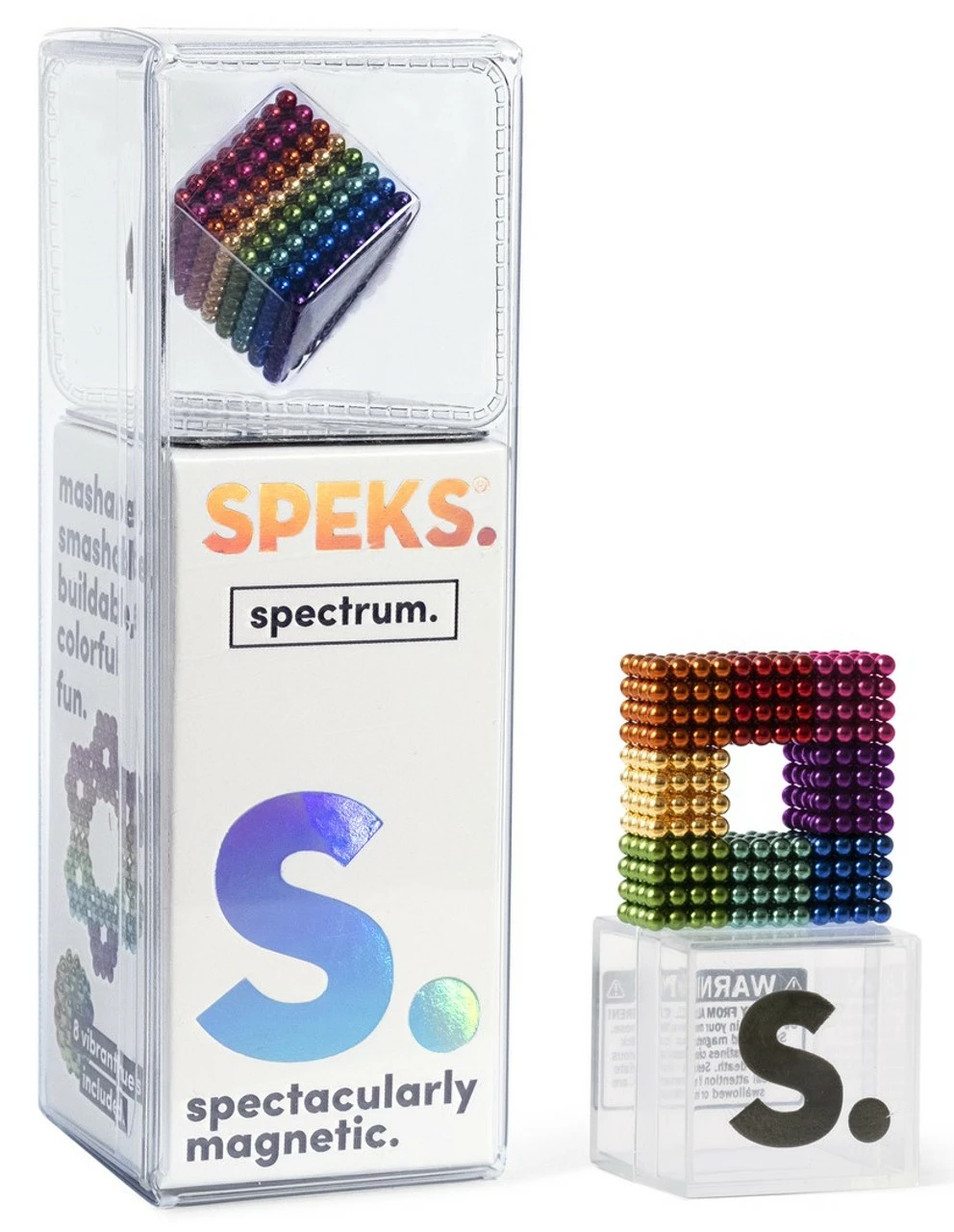 Speks meet all AUSTRALIAN toy and safety standards and are safe with proper use by anyone over the age of 14. Their magnetic flux index rating is less than 50. However, Speks should never be put near or in your nose or mouth.