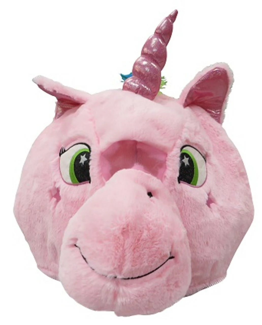 Giant novelty plush Unicorn head. Made from soft quality material with visible mesh in the eyes so you can see through.