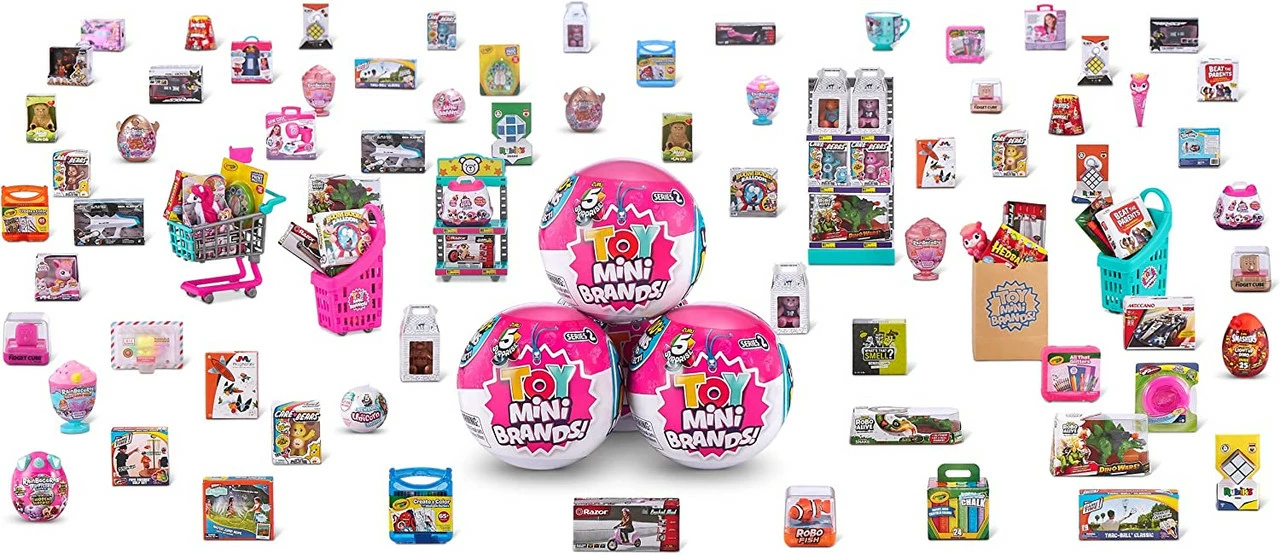 5 Surprise Toy Mini Brands are all the best toys in your toy box made mini! Unwrap and peel to reveal 5 mystery miniatures in every capsule. What 5 surprises will you unbox? There are over 120 miniature toys and accessories to collect including rare glow in the dark and shimmery minis plus, super rare gold minis. Find minis of your favorite toys from Build a Bear Workshop, ZURU, Carebears, Whamo and more. Collect them all to create your own mini toy store.